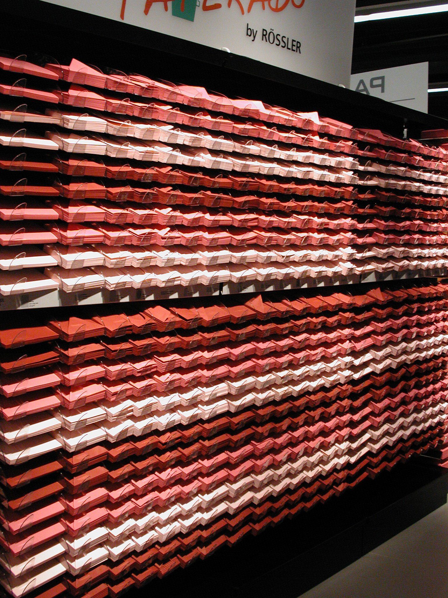 Warenpräsentationssystem "Corner" - hier Gesamtansicht auf der Messe Paperworld /Frankfurt - für die variable Verkaufspräsentation von Bogenpapier in unterschiedlichen Formaten im Facheinzelhandel
