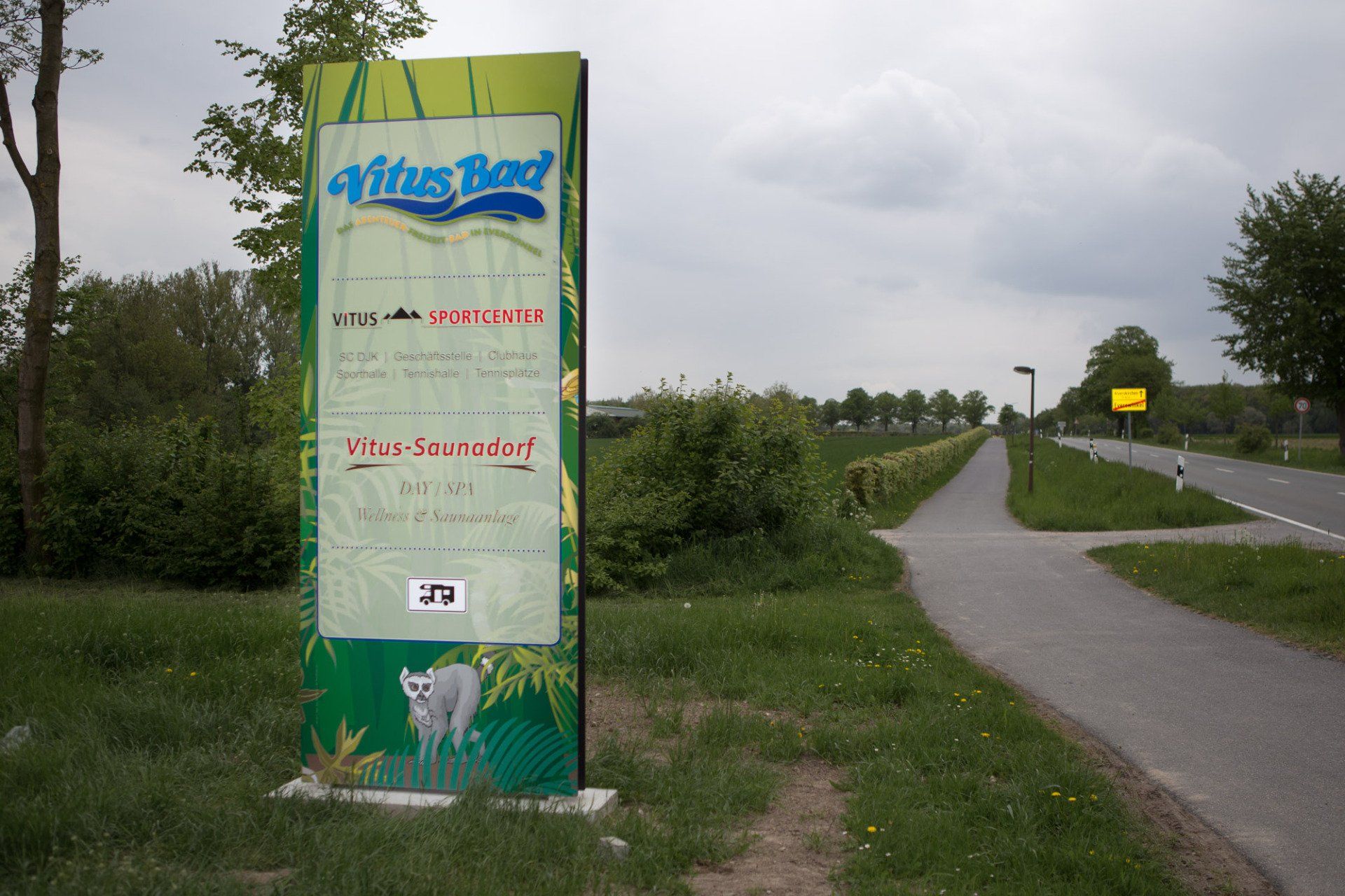 Konzeption und Layout von neuen Hinweisschildern auf das Vitus-Bad Everswinkel, indirekt beleuchtet zur Vermeidung der Blendwirkung an nebenstehenden Parkplatzausfahrten.