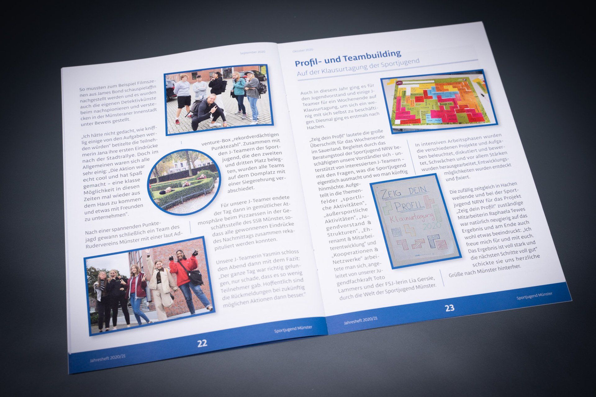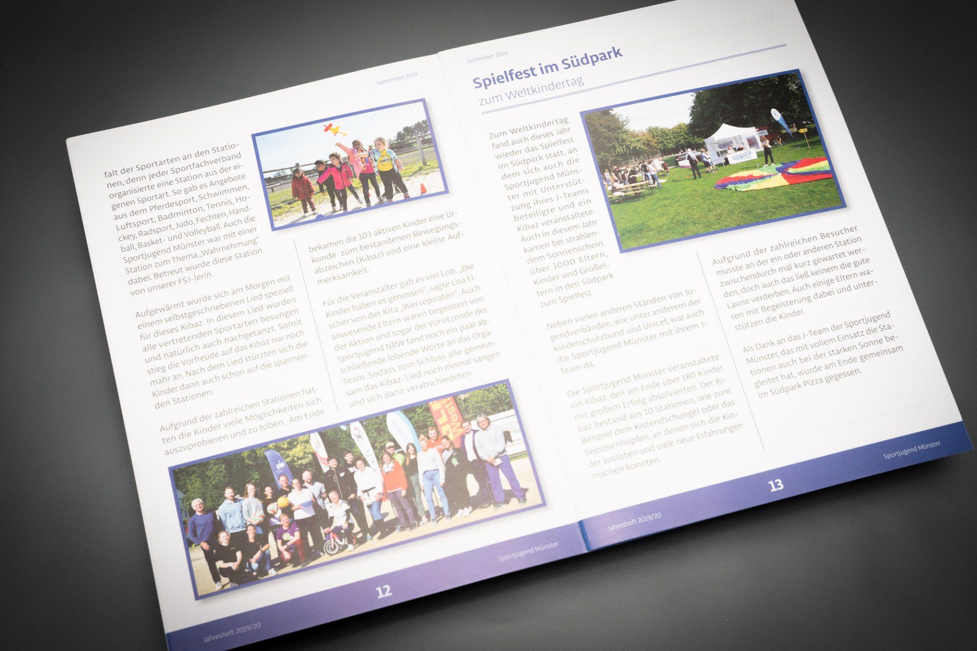 Layout des turnusmäßigen Jahresrückblicks über die Projekte der Sportjugend Münster.