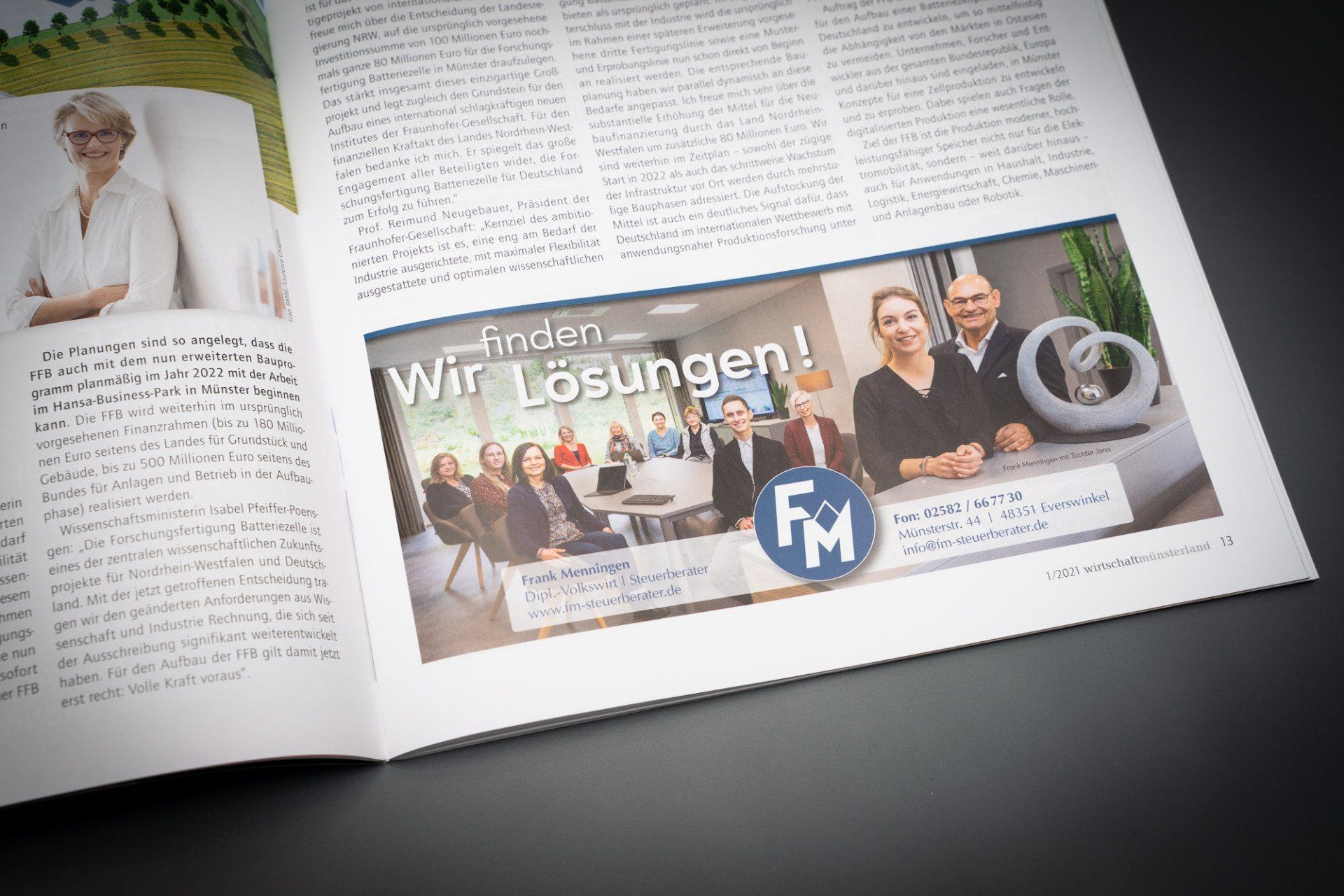 Gestaltung einer Insertion entsprechend dem Satzspiegel im Wirtschaftsmagazin Münsterland.