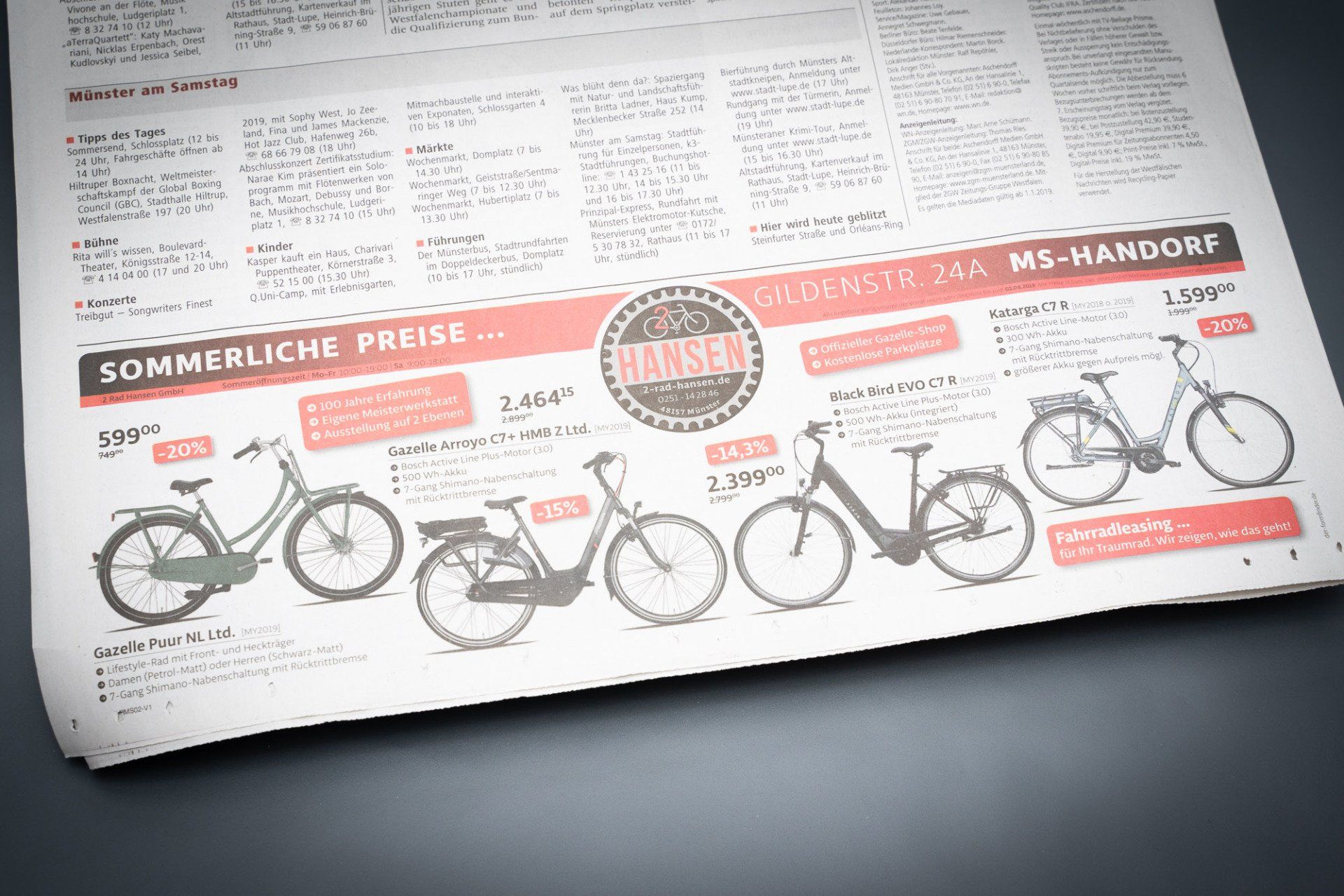 Zeitungsannonce für das Magazin "Münster geht aus"