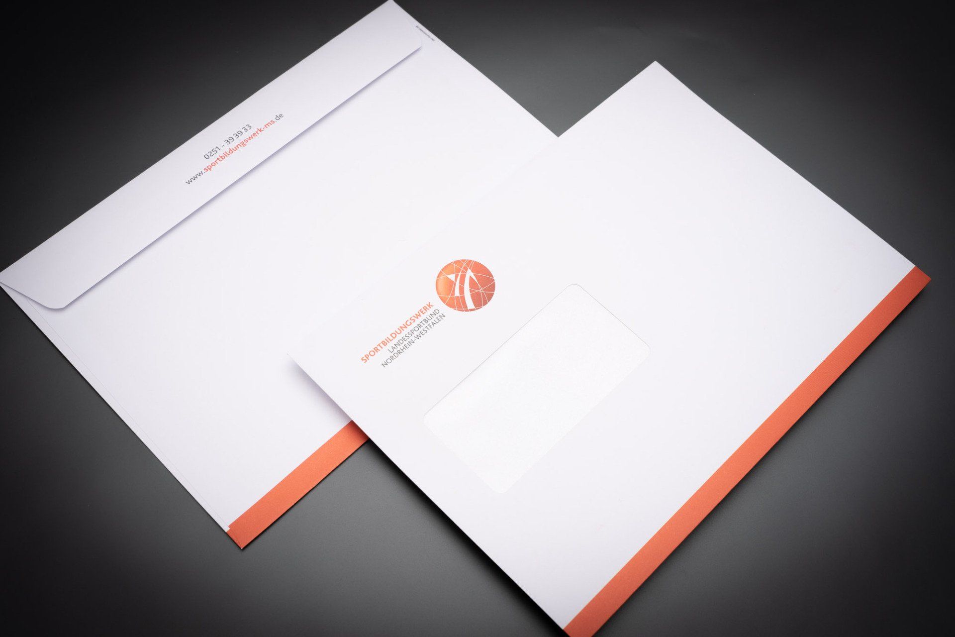 Einheitliche Gestaltung von Versandkuverts in den 3 üblichen Größen DIN-L, C5 und C4 - Ausführung umlaufend und über den Randbereich hinaus