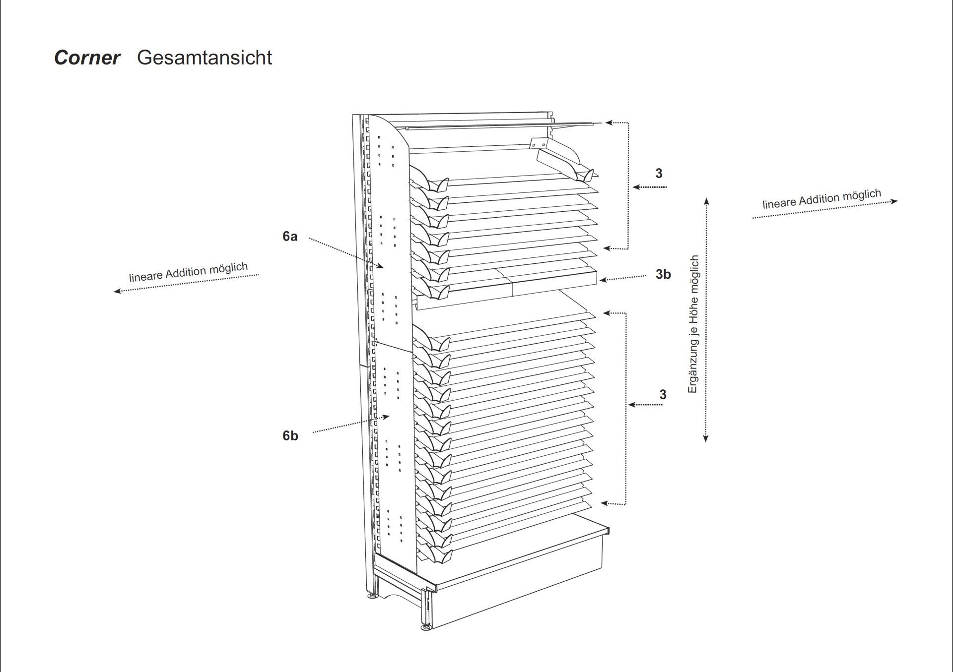 Warenpräsentationssystem "Corner" für die variable Verkaufspräsentation von Bogenpapier in unterschiedlichen Formaten im Facheinzelhandel