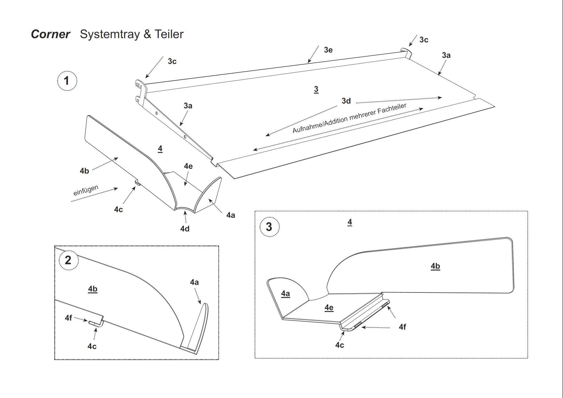 Warenpräsentationssystem "Corner" - hier Fachboden und Teiler - für die variable Verkaufspräsentation von Bogenpapier in unterschiedlichen Formaten im Facheinzelhandel