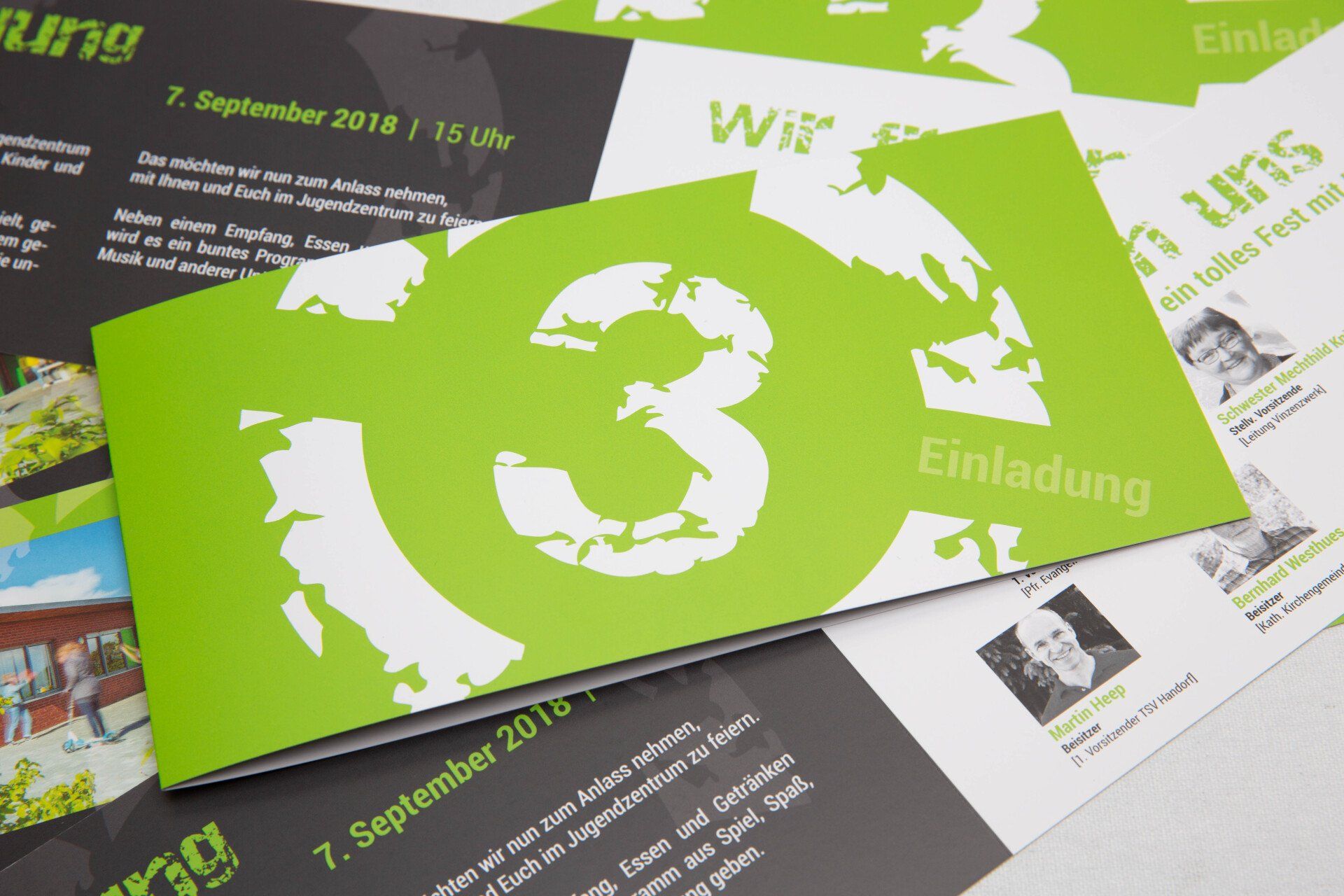 Layout und Design als 8Seiter DIN-L Hochformat im Zick-Zack-Falz,