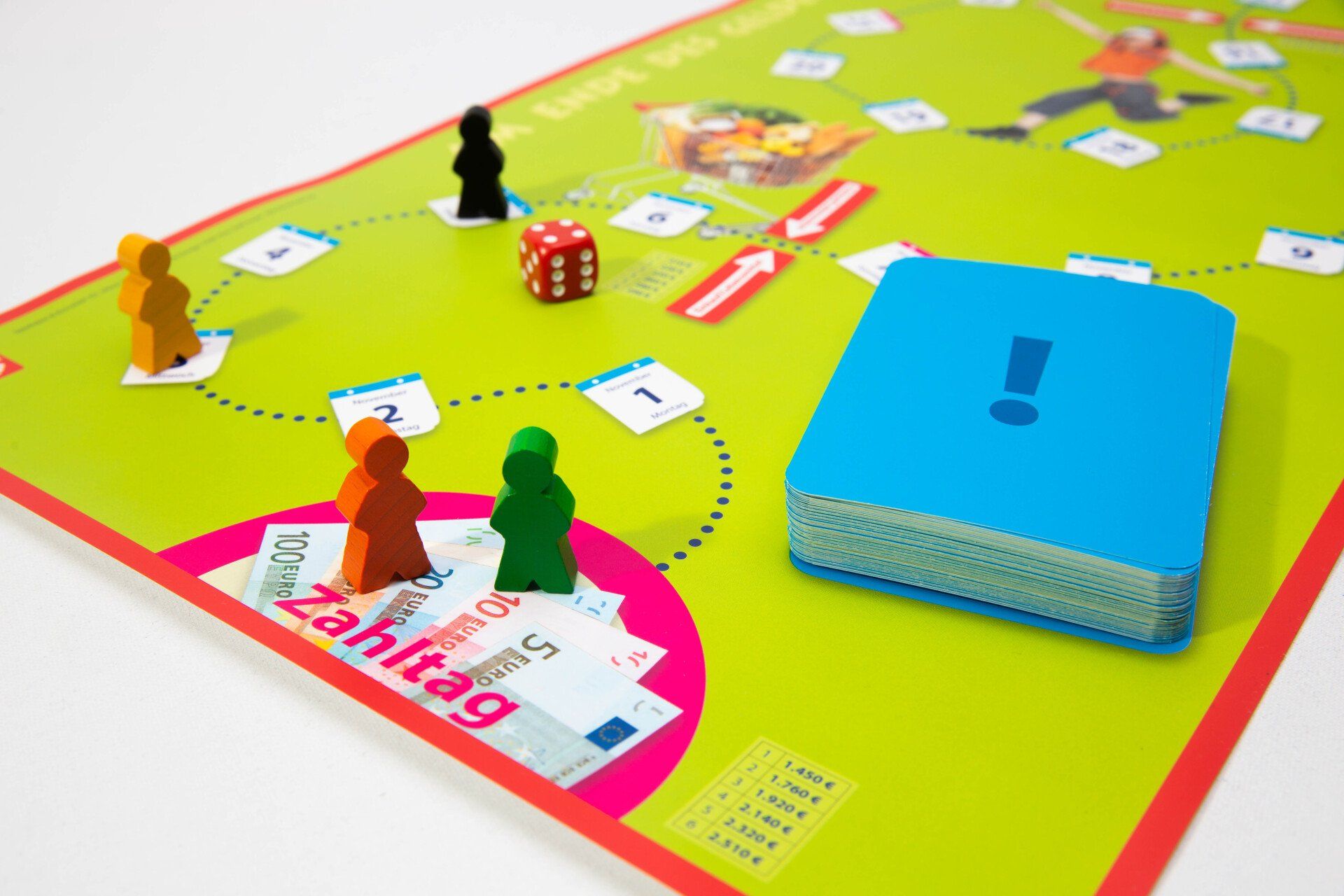 ButtonGestaltung und Produktion eines Armutsspiels (hier: Spielplan/Aufbau).